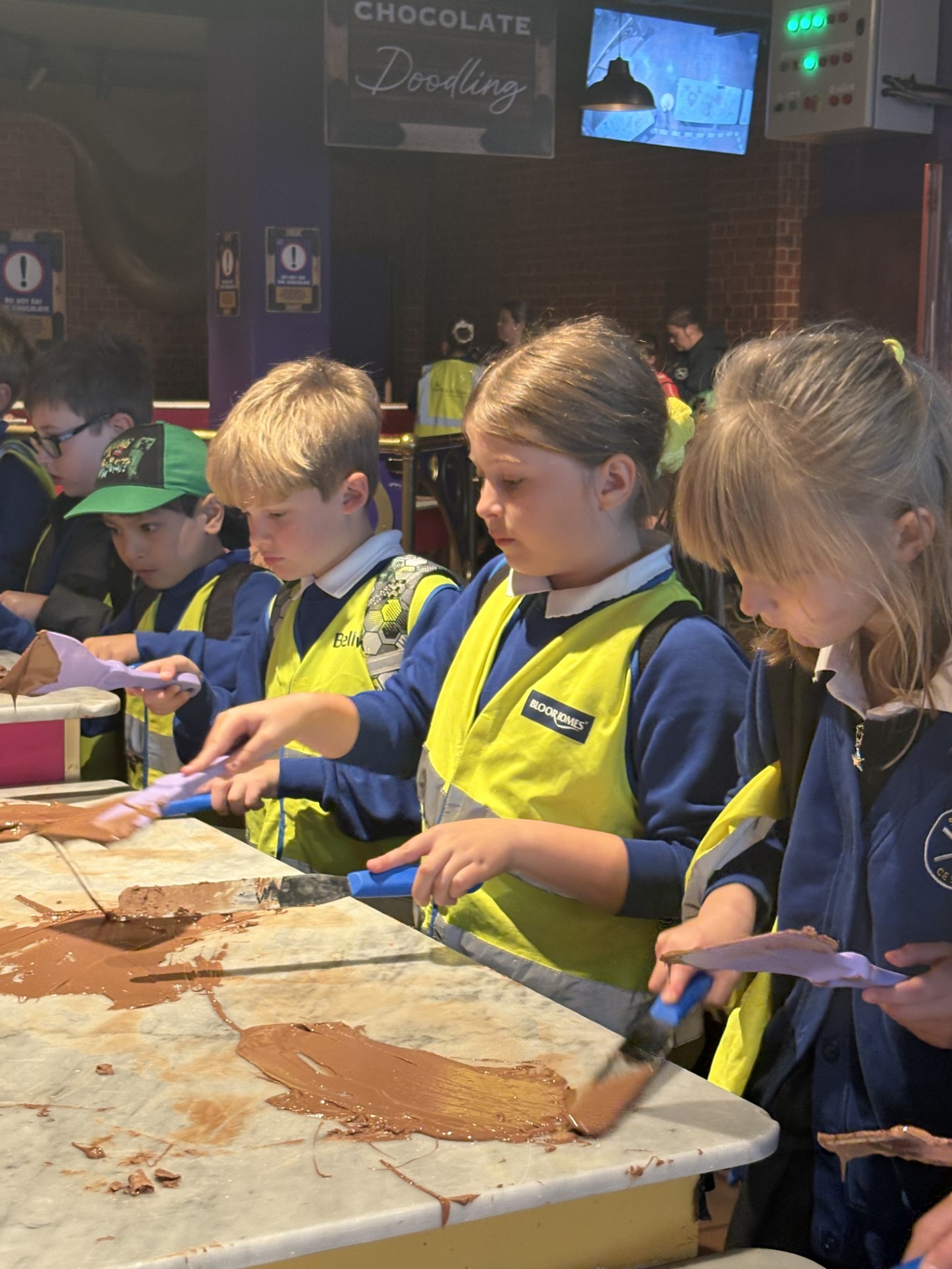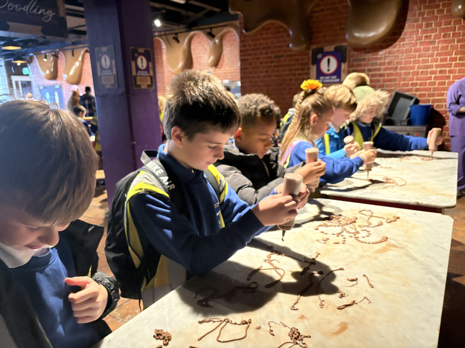 Our Year 5 trip to Cadbury World was a fantastic experience! We began by touring through the rainforest, where we saw cacao trees and learned about the ancient Maya civilisation who first discovered the magic of chocolate. We then enjoyed a tour of the factory before sampling some delicious chocolate treats and even had a go at tempering our own chocolate. To finish the day, we took part in a fascinating workshop about the Maya civilisation, where we smelt raw cacao and even dressed up as Maya royalty — who were said to drink up to 30 cups of hot chocolate a day! It was a fun, educational, and chocolate-filled adventure from start to finish.