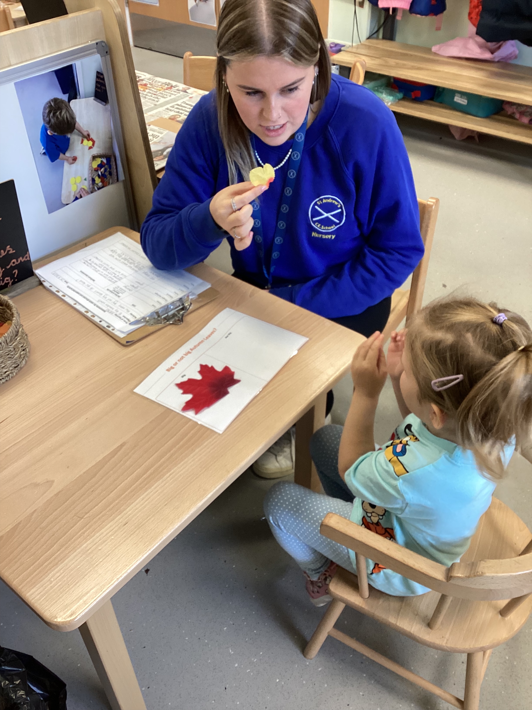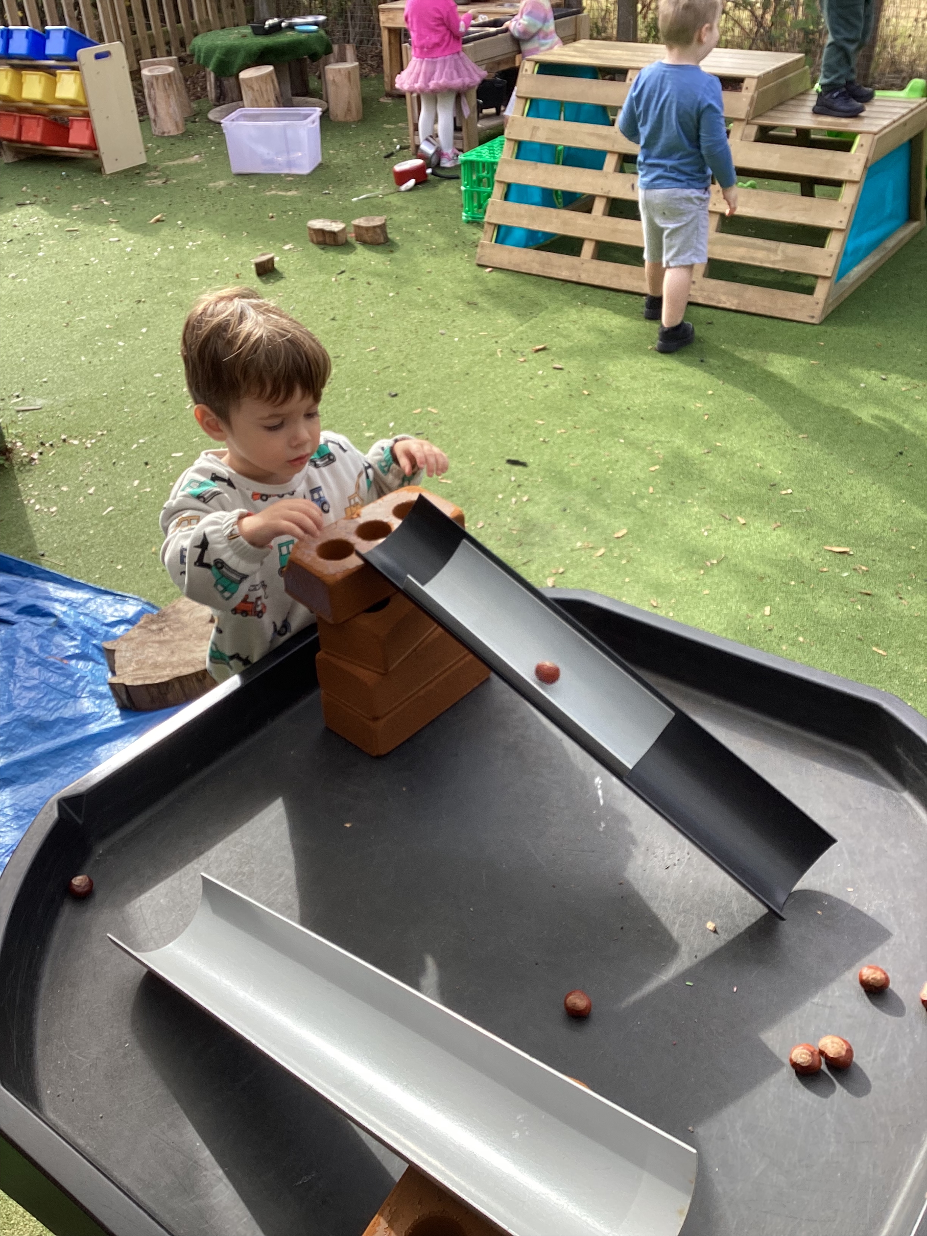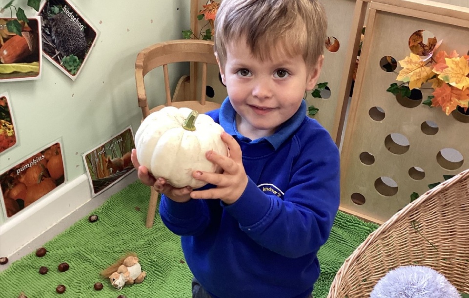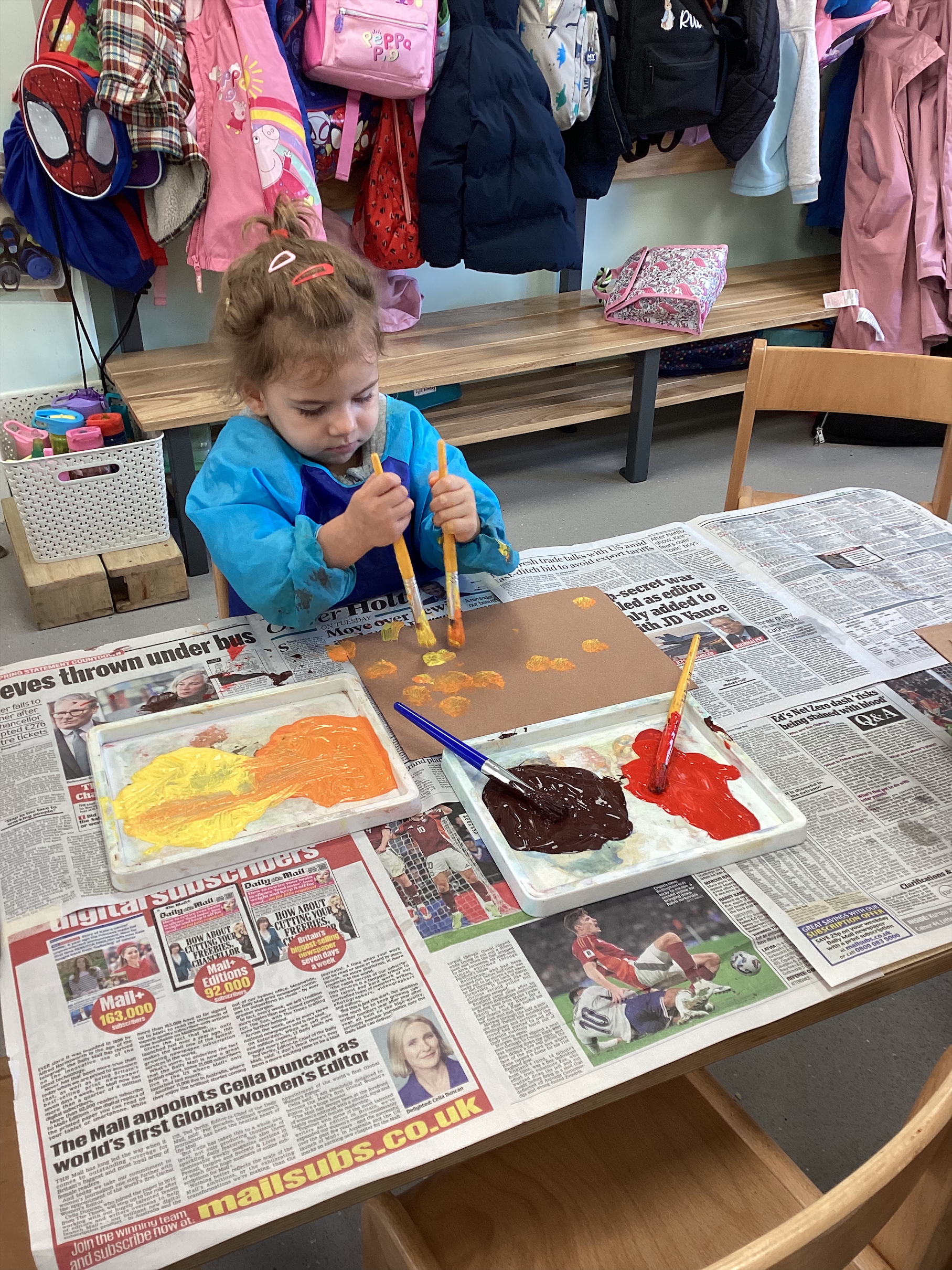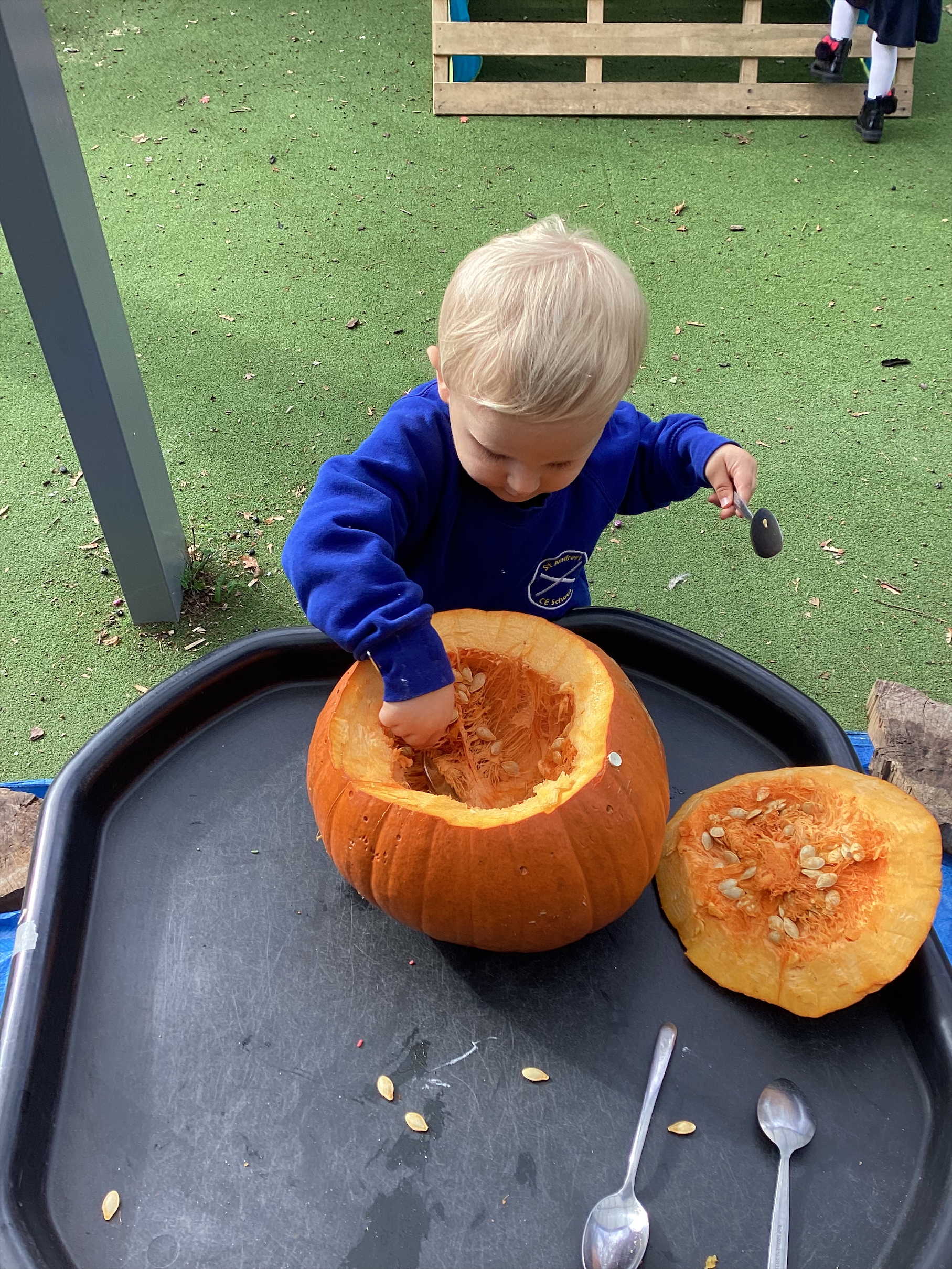 This week in Apples, we’ve been diving into the theme of Autumn. At Forest School, the children created beautiful leaf crowns, had fun rolling conkers, and even hammered golf tees into a pumpkin before scooping it out! They also made their own Playdough hedgehogs, explored the textures of homemade gloop, and enjoyed a rhyme all about falling leaves.