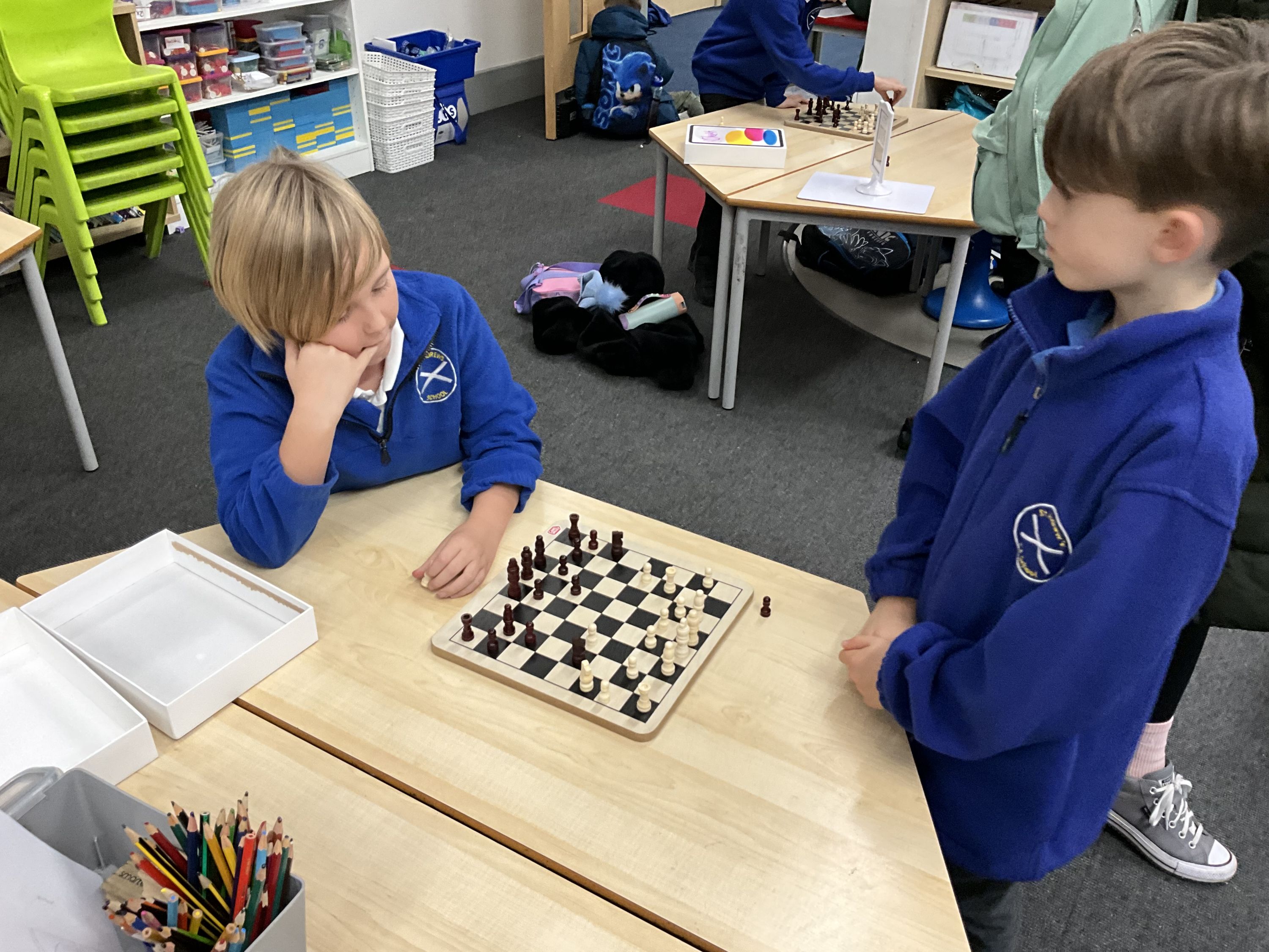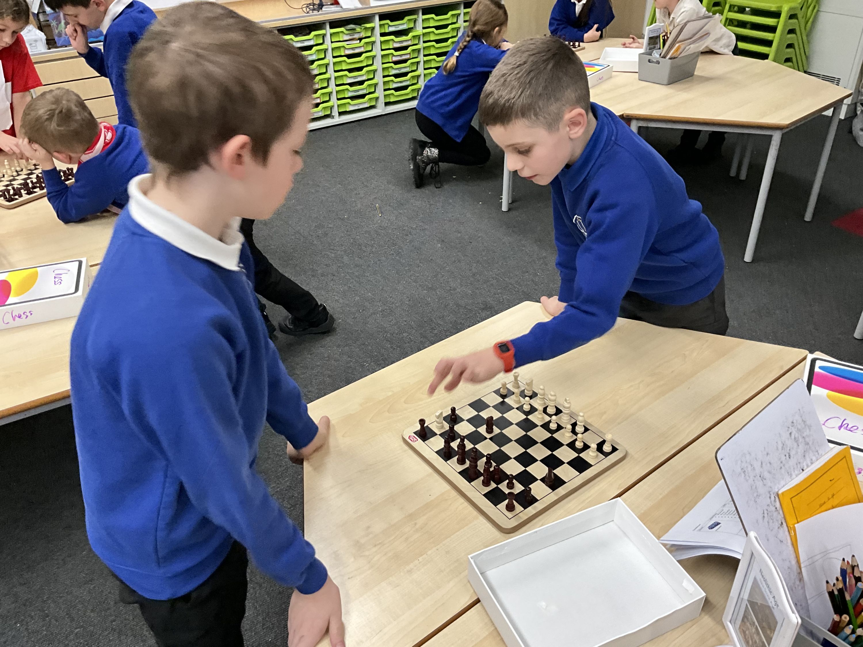 On Tuesday chess club brought children with a range of understanding and experience together. Those that knew the rules were able to play some competitive matches and the focus with our beginners was on setting up the board and how each piece can move. The children developed this knowledge well and were able to begin to have some matches.