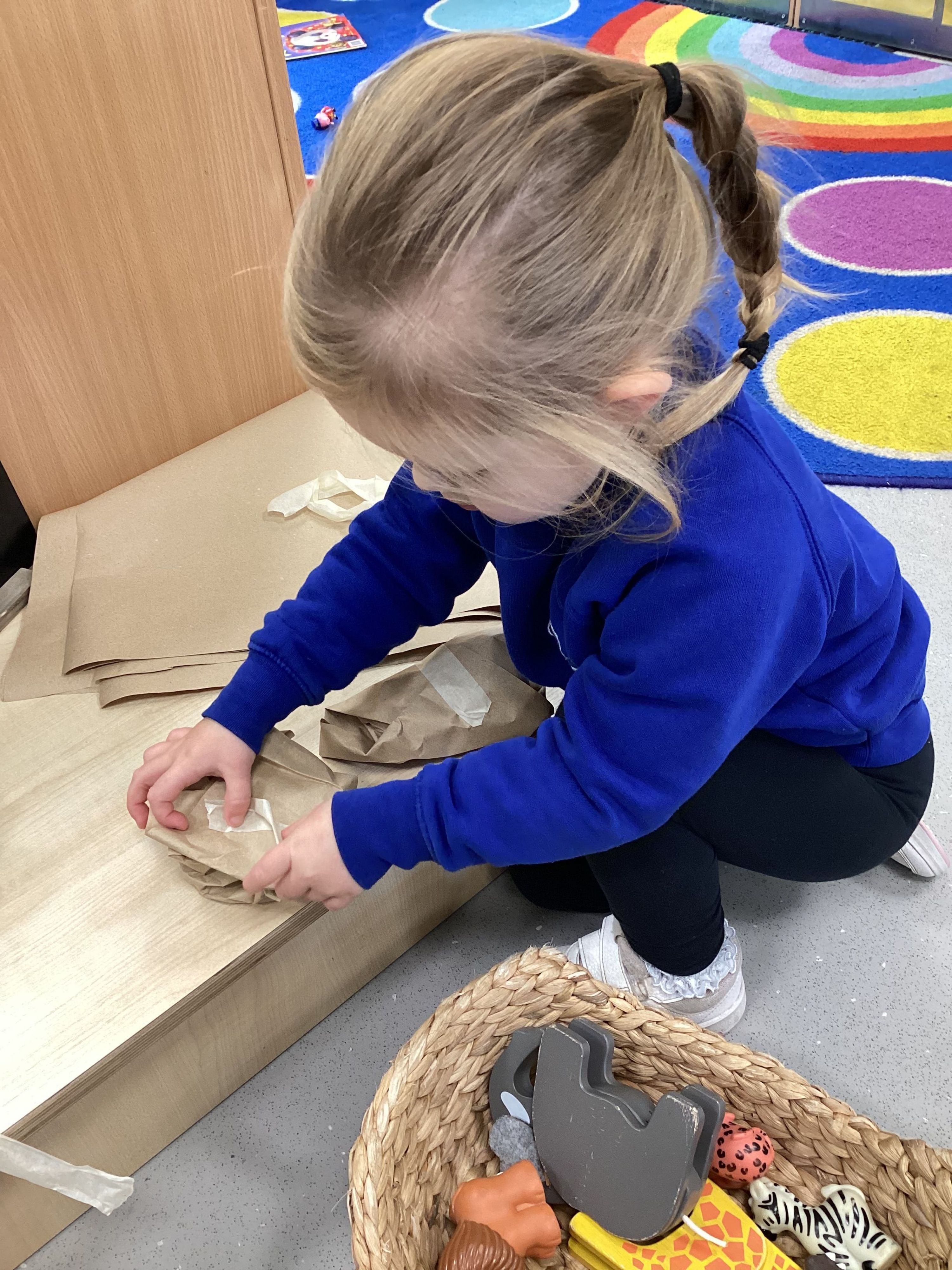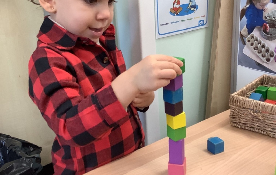In our role play area this week, we have had the hairdresser tools out. The children have enjoyed using all the hair tools to wash and put their friend's hair up. In the maths area, the children were asked "How tall can you build your tower up?" The children did a great job at balancing and counting their blocks! Outside, we have stacked the crates and the tyres so the children can climb up. We have also created a ramp and gave the children a challenge to push the cars up the ramp!