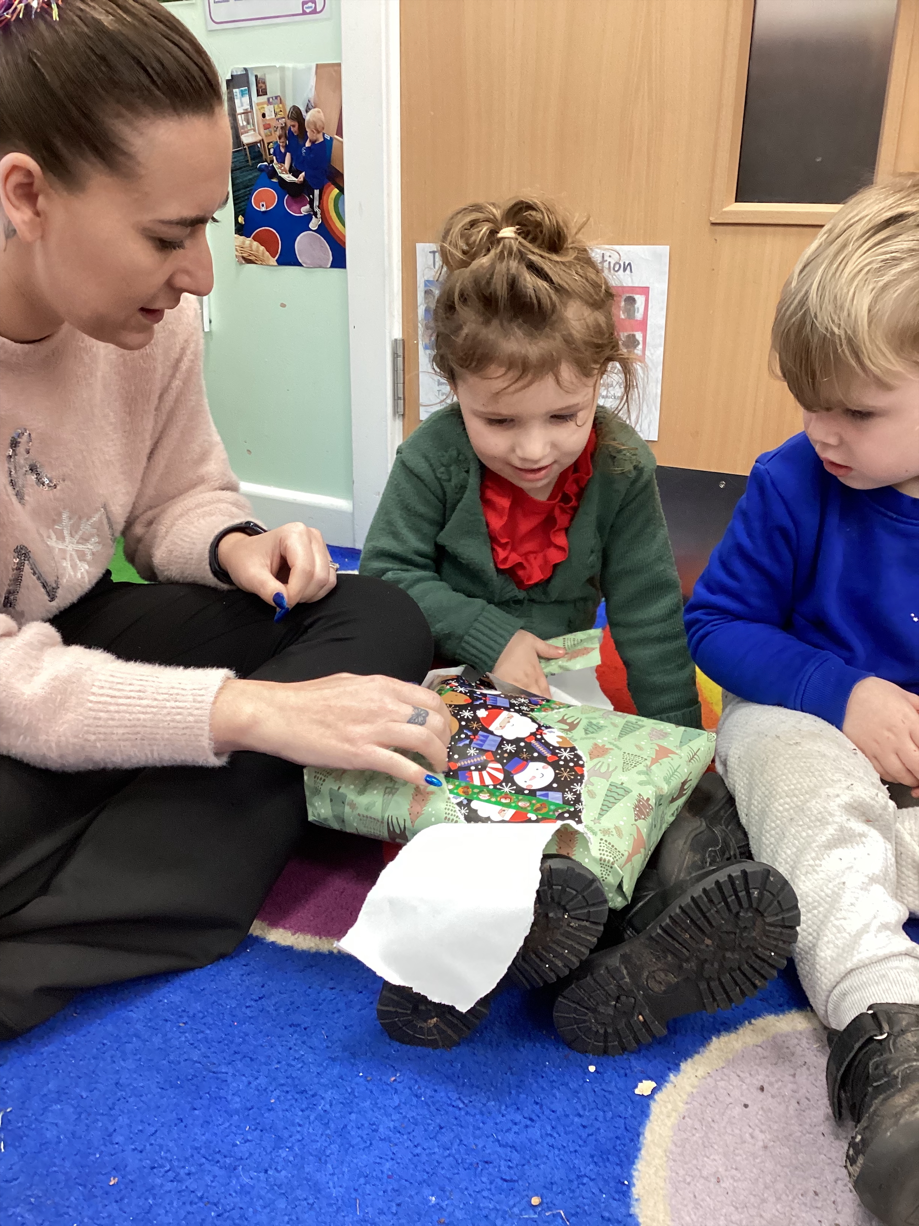 This week we have had a lovely time in Apples. The children have been learning to wrap presents, decorating their tree cookie they cut in Forest School, creating their own Christmas Jumpers, playing a game of Pass the Parcel and a special visitor came to visit us! We would like to wish our families a very Merry Christmas and a Happy New Year!