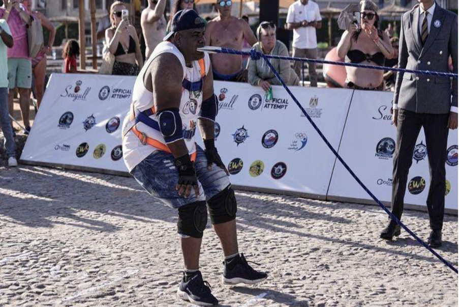 An Egyptian wrestler is hoping he has set a world record after pulling a 700-ton (635,000kg) ship with his teeth.